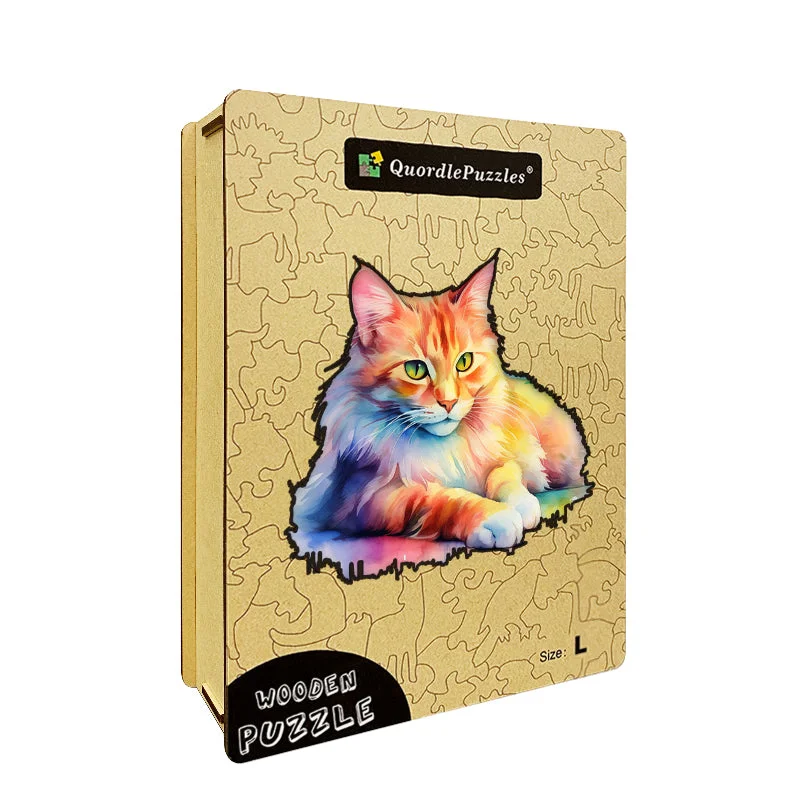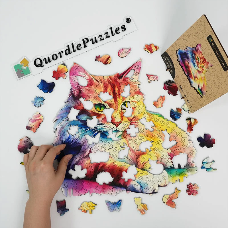 🔥 Ostatni dzień 92% - drewniana układanka z kotem akwarelowym